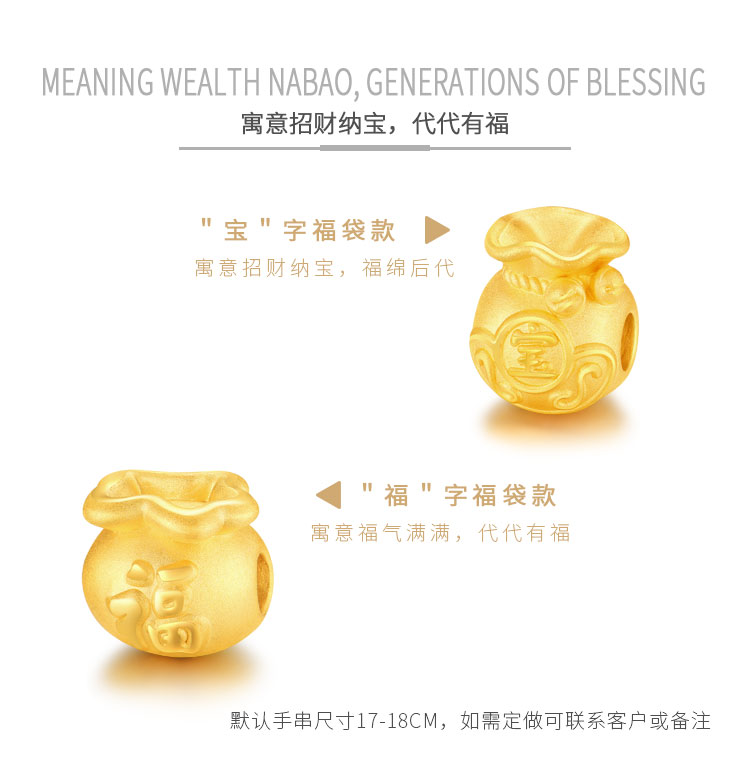 黃金轉(zhuǎn)運珠佩戴時,隨著肢體動作不停轉(zhuǎn)動,寓意為佩戴者時時轉(zhuǎn)運,使這好運隨身。