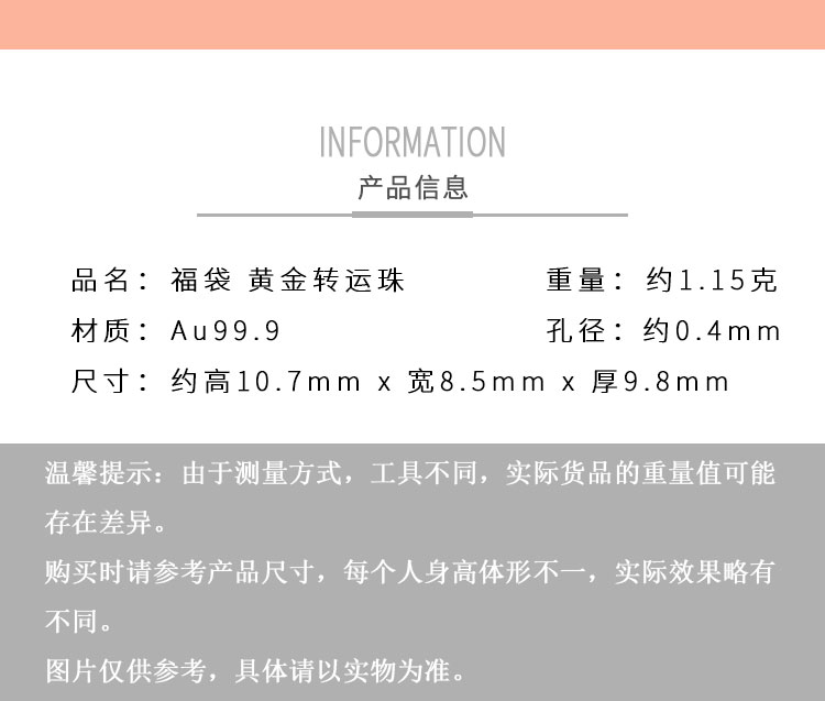 黃金轉(zhuǎn)運珠佩戴時,隨著肢體動作不停轉(zhuǎn)動,寓意為佩戴者時時轉(zhuǎn)運,使這好運隨身。