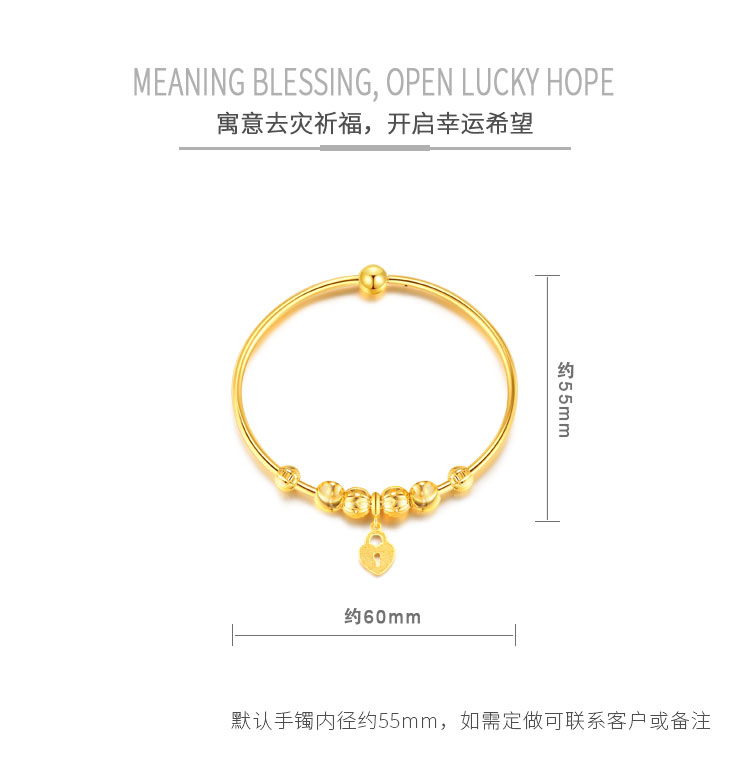 貓眼珠黃金手鐲“祈?!薄靶蔫€”“心鎖”系列。貓眼珠系列手鐲寓意一把鑰匙開一把鎖,只為自己的愛人打開內(nèi)心的美好祝愿,并為心愛的人祈求平安幸福。